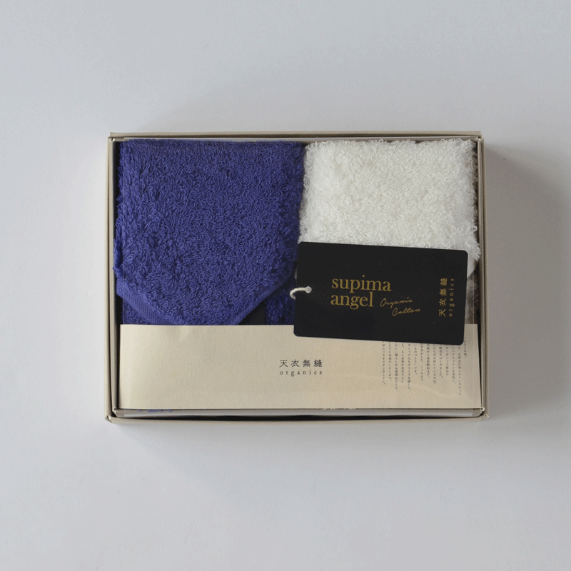 SPEC ・商品名:スーピマエンジェル ギフト2色セット ウォッシュタオル2枚組 ・商品サイズ(約):34×40cm ・素材:綿100%(オーガニックコットン) ・カラー:ホワイトとロイヤルブルー ・認証:OCS Contains 100% Organically Grown Cotton Certified by Ecocert 206809 ・生産地:日本(大阪府泉佐野市) ・備考:洗濯ネット使用 【知っておいていただきたいこと】 ・日光やお洗濯により、色性が変色する場合があります。