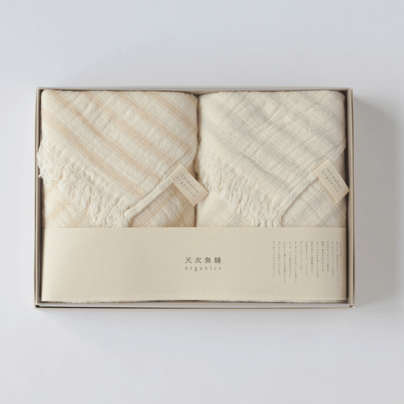 SPEC ・商品名:スラブガーゼ ギフトセット フェイスタオル2枚組 ・カラー:ブラウン・グレー ・商品サイズ(約):34×85cm ・素材:綿100%(オーガニックコットン) ・生産地:日本(大阪府泉佐野市) ・備考:製造工程でシワ加工を行うため、製品によりサイズが数cm異なる場合がございます。