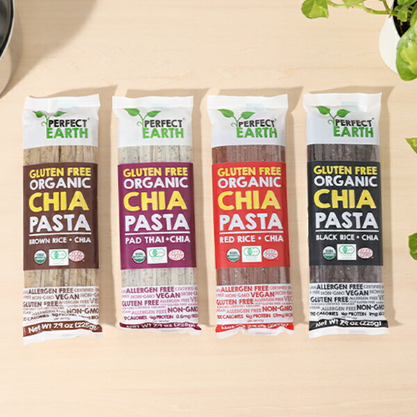 PERFECT EARTH(パーフェクトアース)オーガニックグルテンフリーチアパスタ 玄米/白米/赤米/黒米 国際的なオーガニック認定機関の厳しい審査基準を通過したお米のみを使用したグルテンフリーかつアレルゲンフリーのライスパスタ。