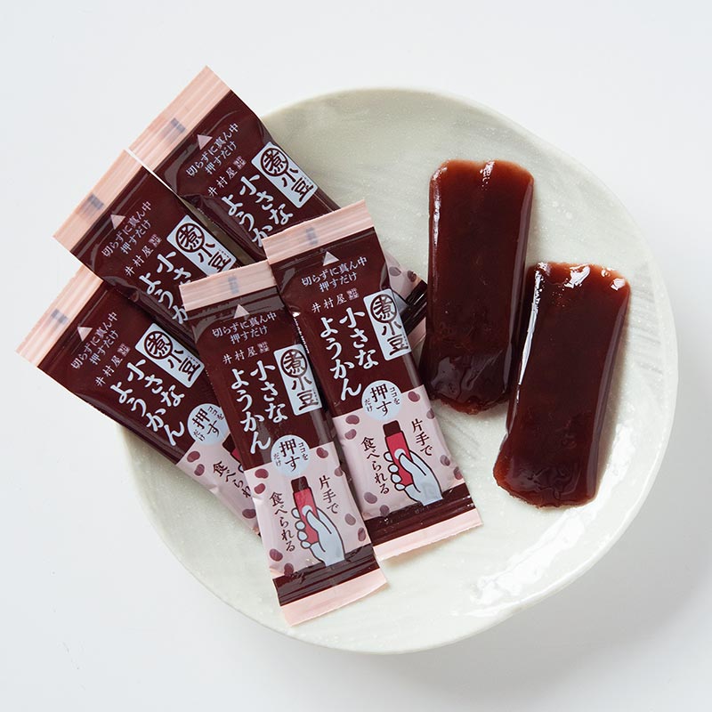 ・ミニようかん ・抹茶ようかん ・黒糖ようかん ・黒糖わらびもち 【特徴】 ●ミニようかん…あずきのおいしさを逃さない「煮あずき製法」により、あずきのいいところをギュッと閉じ込め、風味豊かなつぶあんタイプのようかんに仕上げました。
