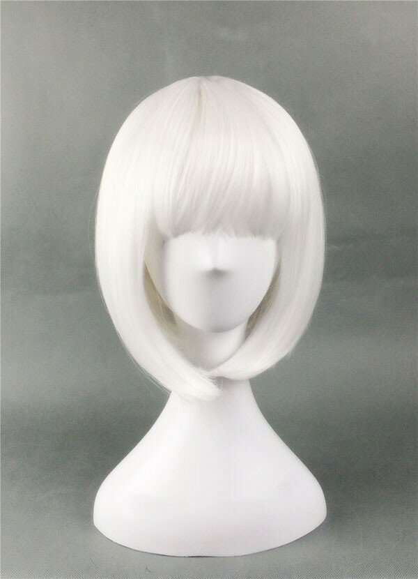 ウィッグ フルウィッグ ホワイト 白髪 ショート ボブ レディース ハロウィン ふんわり前髪 ナチュラル 原宿風 かつら ぱっつん前髪 コスプレ 耐熱ウィッグ コスチューム 仮装 普段使い 文化祭 イベント 学園祭 中世ヨーロッパ 女装 発表会 学芸会 舞台 演劇 小道具 dp062x1